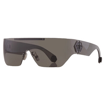 Philipp Plein Sunglasses. Series number: SPP029M. Color code: 0568. Shape: Shield. Lens Width: 99 mm. Lens Bridge: 0 mm. Arm Length: 120 mm. 100% UV protection. Non-Polarized. Frame Material: Plastic. Frame Color: Gunmetal. Lenses Type: Gunmetal. Rim Style: Rimless. UPC/EAN code: 190605373170. Philipp Plein Gunmetal Shield Men's Sunglasses SPP029M 0568 99.