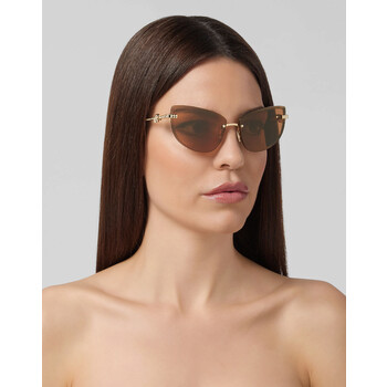 Philipp Plein Sunglasses. Series Holly. Series number: WES010. Color code: G6ZG. Shape: Cat Eye. Lens Width: 61 mm. Arm Length: 140 mm. 100% UV protection. Frame Color: Gold. Lenses Type: Copper. Rim Style: Rimless. UPC/EAN code: 4062697328801. Philipp Plein Holly Copper Cat Eye Ladies Sunglasses 000-WES0103-PTE003N-G6ZG. Made in Italy.