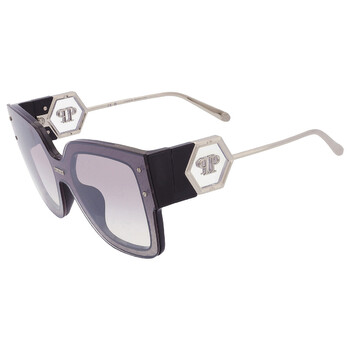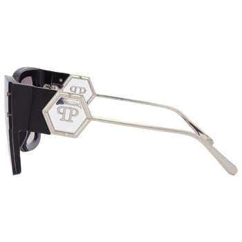 Philipp Plein Sunglasses. Series number: SPP041M. Color code: Z42X. Shape: Square. Lens Width: 99 mm. Lens Bridge: 0 mm. Arm Length: 135 mm. 100% UV protection. Non-Polarized. Frame Material: Plastic;Metal. Frame Color: Black. Lenses Type: Silver Mirror. Rim Style: Full-Rim. UPC/EAN code: 190605389768. Philipp Plein Silver Mirror Square Ladies Sunglasses SPP041M Z42X 99.