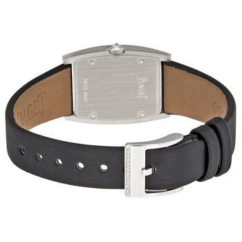 18kt white gold set with 110 diamonds (0.5 ct) case with a black satin strap. Fixed 18kt white gold bezel with diamond set. Diamond-set dial with silver-toned hands and Arabic numeral hour markers. Dial Type: Analog. Piaget Calibre 57P quartz movement. Scratch resistant sapphire crystal. Brilliant-cut diamond (approx. 0.1 ct). crown. Solid case back. Tonneau case shape, case size: 30 mm x 22 mm, case thickness: 6.7 mm. Buckle 13 brilliant-cut diamonds (approx. 0.1 ct) clasp. Water resistant at 30 meters / 100 feet. Functions: hour, minute. Additional Info: dial set with 237 brilliant-cut diamonds (approx. 0.5 ct). Limelight Series. Luxury watch style. Watch label: Swiss Made. Item Variations: GOA37091 , A37091 , 37091. Piaget Limelight Diamond-set Dial Black Satin Ladies Watch G0A37091.