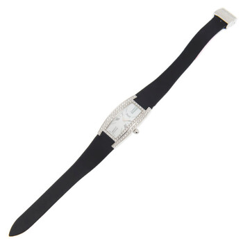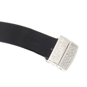 18k White Gold Case. Black Satin Strap. Silver Mother of Pearl Dial. Diamond Bezel. Scratch Resistant Sapphire Crystal. Tang Clasp. 33.6mm Case Diameter. Quartz Movement. 18kt white gold case with a black satin strap. Fixed bezel with diamond set. Silver mother of pearl dial with index-Arabic numeral hour markers. Dial Type: Analog. Quartz movement. Scratch resistant sapphire crystal. Screw down crown. Solid case back. Tonneau case shape, case size: 33.6 mm. Tang clasp. Water resistant at 30 meters / 100 feet. Functions: hour, minute,. Limelight Series. Luxury watch style. Watch label: Swiss Made. Item Variations: GOA27063 , A27063 , 27063. Piaget Limelight Quartz Diamond Ladies Watch G0A27063.