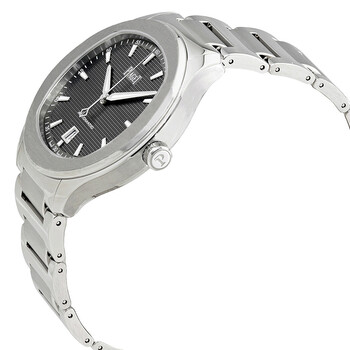 Stainless steel case with a stainless steel bracelet. Fixed stainless steel bezel. Grey guilloche dial with luminous silver-tone hands and index hour markers. Minute markers around the outer rim. Dial Type: Analog. Luminescent hands and markers. Date display at the 6 o'clock position. Automatic movement with a 50-hour power reserve. Scratch resistant sapphire crystal. Transparent case back. Case size: 42 mm. Case thickness: 9.4 mm. Cushion case shape. Fold over clasp with a push button release. Water resistant at 100 meters / 330 feet. Functions: date, hour, minute, second. Luxury watch style. Watch label: Swiss Made. Piaget Polo S Automatic Grey Guilloche Dial Men's Watch G0A41003