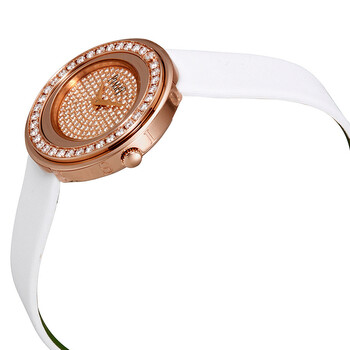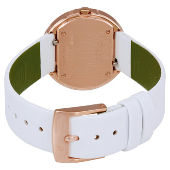 18kt rose gold case with a white satin strap. Rotating bezel. Diamond pave dial with silver-toned hands. Dial Type: Analog. Quartz movement. 157p engine. Pull / push crown. Case diameter: 29 mm. Case thickness: 6.2 mm. Round case shape. Tang clasp. Water resistant at 30 meters / 100 feet. Functions: hour, minute. Luxury watch style. Watch label: Swiss Made. Piaget Possession Diamond Pave 18kt Rose Gold White Satin Men's Watch GOA37189.