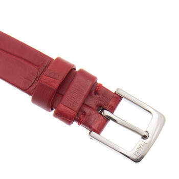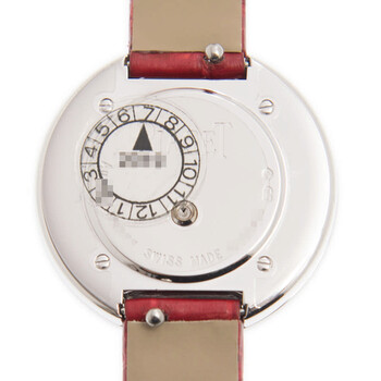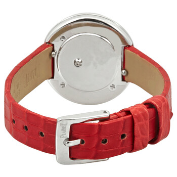 18kt white gold case with a red (alligator) leather strap. Fixed 18kt white gold bezel set with diamonds. Silver dial with silver-tone hands and diamond hour markers. Dial Type: Analog. Piaget Calibre 56P quartz movement. Scratch resistant sapphire crystal. Solid case back. Round case shape. Case size: 29 mm. Case thickness: 7.47 mm. Tang clasp. Water resistant at 30 meters / 100 feet. Functions: hour, minute. Additional Info: case set with 42 brilliant-cut diamonds (approx. 1.04 ct). Possession Series. Luxury watch style. Watch label: Swiss Made. Piaget Possession Diamond Silver Dial Ladies Watch G0A43084.