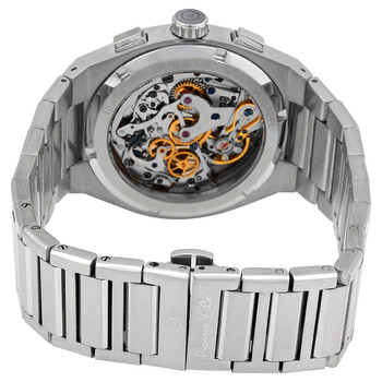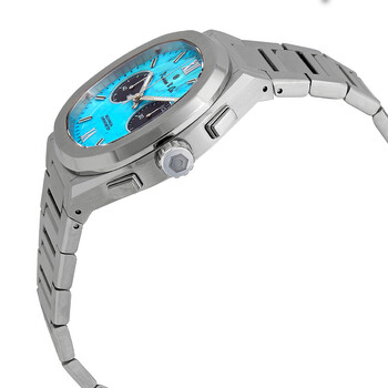 Stainless steel case with a stainless steel bracelet. Fixed stainless steel bezel. Turquoise stone dial with luminous black hands and index hour markers. Minute markers around the outer rim. Dial Type: Analog. Luminescent hands and markers. Chronograph - two black sub-dials displaying: 60 second and 30 minute. Hand wind movement. Scratch resistant sapphire crystal. Transparent case back. Pillow case shape. Case size: 42 mm. Double fold over clasp. Water resistant at 100 meters / 330 feet. Functions: chronograph, hour, minute, second. Chairman II Series. Luxury watch style. Watch label: Swiss Made. Picasso and Co Chairman II Chronograph Hand Wind Men's Watch PWCH2TRSS.