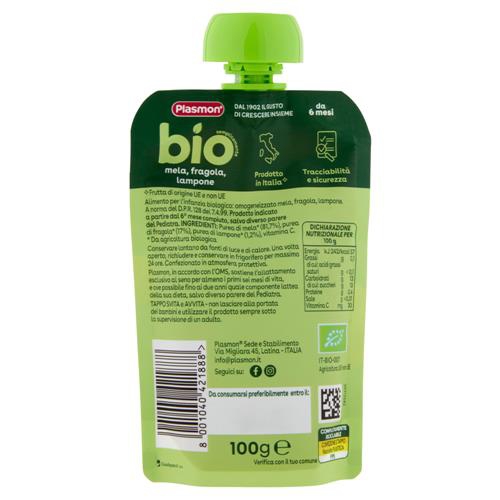 Plasmon პაუჩი ვაშლი, მარწყვი & ჟოლო 100 გ