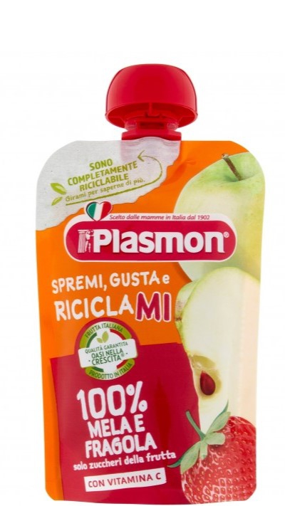 Plasmon პიურე პაუჩი ვაშლი & მარწყვი