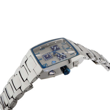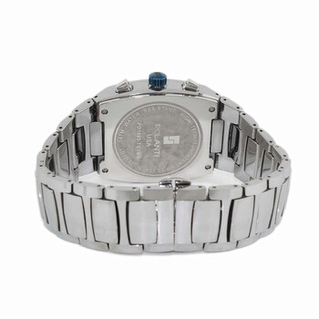 Silver-tone tungsten case and band. Fixed blue tungsten bezel. Grey dial with blue hands and Arabic numeral & index hour markers. Minute scale around the inner rim. Dial Type: Analog. Luminescent hands. Date display at the 4 o'clock position. Chronograph - sub-dials displaying: 60 second. ISA - 8171 Chronograph quartz movement. Scratch resistant sapphire crystal. Pull / push crown. Solid case back. Rectangle case shape, case size: 36.5 mm, case thickness: 12 mm. Band width: 27 mm, band length: 7.25 inches. Deployment with push button release clasp. Water resistant at 50 meters / 165 feet. Functions: chronograph, date, hour, minute, second. Valor Series. Dress watch style. Watch label: Swiss Movement. Polanti Valor Chronograph Quartz Grey Dial Men's Watch PO1085-TGYBU.