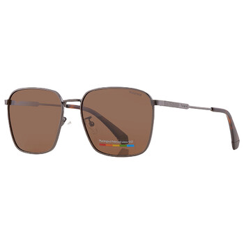 Polaroid Sunglasses. Series number: PLD 4120/G/S/X. Color code: 0KJ1/SP. Shape: Square. Lens Width: 59 mm. Lens Bridge: 17 mm. Arm Length: 145 mm. 100% UV protection. Polarized. Frame Material: Metal. Frame Color: Dark Ruthenium. Lenses Type: Polarized Bronze. Rim Style: Full-Rim. UPC/EAN code: 716736710860. Polaroid Polarized Bronze Square Men's Sunglasses PLD 4120/G/S/X 0KJ1/SP 59.