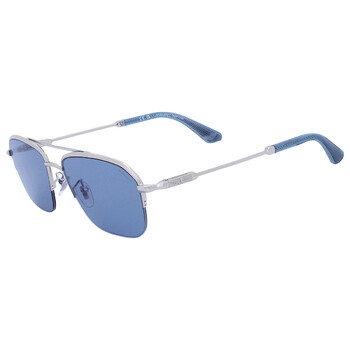 Police Sunglasses. Series number: SPLL18M. Color code: 0579. Shape: Navigator. Lens Width: 56 mm. Lens Bridge: 18 mm. Arm Length: 145 mm. 100% UV protection. Non-Polarized. Frame Material: Stainless Steel. Frame Color: Shiny Palladium. Lenses Type: Blue. Rim Style: Semi-Rimless. UPC/EAN code: 190605449981. Police Blue Navigator Unisex Sunglasses SPLL18M 0579 56.