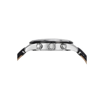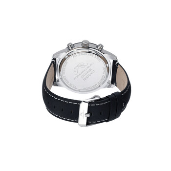 Porsamo Bleu Arthur Men'S Chronograph Watch With Stainless Steel Case And Geniune Leather Band, Date Window Between 4 And 5 O'Clock; Silver Tone, Black & Blue Silver-tone stainless steel case with a black genuine leather strap. Fixed silver-tone stainless steel bezel. Blue dial with silver-tone hands and Arabic numeral & index hour markers. Minute markers around the outer rim. Dial Type: Analog. Date display between 4 and 5 o'clock position. Chronograph - three sub-dials displaying: 60 second, 30 minute and 24 hour. Miyota Caliber JS25 quartz movement. Scratch resistant mineral crystal. Pull / push crown. Solid case back. Round case shape, case size: 44 mm, case thickness: 12 mm. Band width: 22 mm, band length: 8 inches. Buckle clasp. Water resistant at 50 meters / 165 feet. Functions: chronograph, date, hour, minute, second. Arthur Series. Luxury watch style. Watch label: Japan Movt. Porsamo Bleu Arthur Chronograph Quartz Blue Dial Men's Watch 1091CARL.