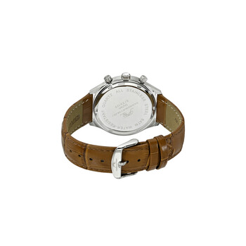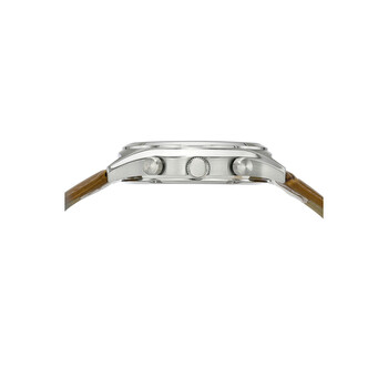 Porsamo Bleu Dylan Men's Multifunction Watch With Stainless Steel Case And Genuine Leather Band; Silver Tone and Brown Silver-tone stainless steel case with a brown leather strap. Fixed silver-tone stainless steel bezel. Silver-tone dial with silver-tone hands and index hour markers. Minute markers around the outer rim. Dial Type: Analog. Luminescent hands and markers. Date display between 4 and 5 o'clock position. Quartz movement. Scratch resistant mineral crystal. Pull / push crown. Solid case back. Round case shape, case size: 41 mm, case thickness: 11 mm. Band width: 20 mm. Buckle clasp. Water resistant at 50 meters / 165 feet. Functions: chronograph, date, hour, minute, second. Dylan Series. Luxury watch style. Watch label: Japan Movt. Porsamo Bleu Dylan Silver-tone Dial Men's Watch 873ADYL.