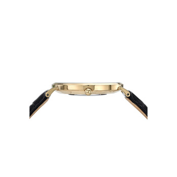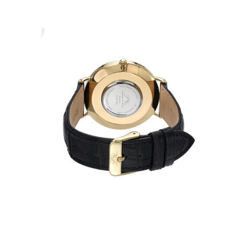 Porsamo Bleu Henry Men'S Watch With Stainless Steel Case And Genuine Leather Band; Gold Tone & Black Yellow gold-tone stainless steel case with a black genuine leather strap. Fixed yellow gold-tone stainless steel bezel. Black dial with yellow gold-tone hands and index hour markers. Minute markers around the outer rim. Dial Type: Analog. 60 second subdials. Miyota Caliber 1L45 quartz movement. Scratch resistant mineral crystal. Solid case back. Round case shape, case size: 40 mm. Water resistant at 30 meters / 100 feet. Functions: hour, minute, small second. Henry Series. Luxury watch style. Watch label: Japan Movt. Porsamo Bleu Henry Quartz Black Dial Men's Watch 842DHEL.