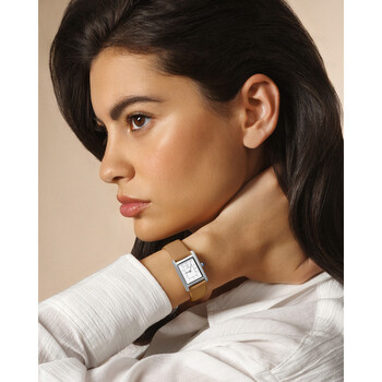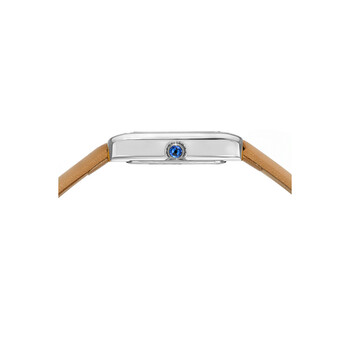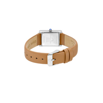 Stainless steel case with a brown leather strap. Fixed stainless steel bezel. White dial with silver-tone hands and diamond hour markers. Minute markers around an inner ring. Dial Type: Analog. Ronda caliber 762 quartz movement. Scratch resistant mineral crystal. Pull / push crown. Solid case back. Rectangle case shape. Case dimensions: 21.5 mm x 30 mm. Band width: 16 mm. Tang clasp. Water resistant at 30 meters / 100 feet. Functions: hour, minute. Karolina Series. Luxury watch style. Watch label: Swiss Movt. Porsamo Bleu Karolina Quartz Diamond White Dial Ladies Watch 1081CKAL.