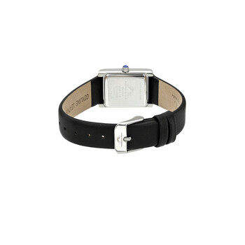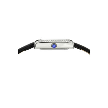 Porsamo Bleu Karolina Diamond Ladies' Rectangular Watch With Topaz Bezel and Diamond Hour Markers; Stainless Steel Case And Genuine Leather Band, Silver Tone & Black Silver-tone stainless steel case with a black leather strap. Fixed silver-tone stainless steel bezel. White dial with silver-tone hands and index hour markers. Minute scale around the inner rim. Dial Type: Analog. Luminescent hands. Quartz movement. Scratch resistant mineral crystal. Pull / push crown. Solid case back. Rectangle case shape, case size: 21 mm, case thickness: 8 mm. Band width: 16 mm. Buckle clasp. Water resistant at 30 meters / 100 feet. Functions: hour, minute. Karolina Series. Luxury watch style. Watch label: Swiss Made. Porsamo Bleu Karolina Quartz White Dial Ladies Watch 1083AKAL.
