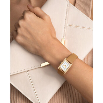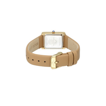 Porsamo Bleu Karolina Diamond Ladies' Rectangular Watch With Topaz Bezel and Diamond Hour Markers; Stainless Steel Case And Genuine Leather Band, Gold Tone & Beige Yellow gold-tone stainless steel case with a beige leather strap. Uni-directional rotating yellow gold-tone stainless steel bezel. White dial with yellow gold-tone hands and index hour markers. Minute scale around the inner rim. Dial Type: Analog. Luminescent hands and markers. Ronda Caliber 762 quartz movement. Scratch resistant mineral crystal. Pull / push crown. Solid case back. Rectangle case shape, case size: 21.5 mm, case thickness: 8 mm. Band width: 16 mm, band length: 7 inches. Buckle clasp. Water resistant at 30 meters / 100 feet. Functions: hour, minute. Additional Info: topaz bezel and diamond hour markers. Karolina Series. Luxury watch style. Watch label: Switzerland Movement. Porsamo Bleu Karolina Quartz White Dial Ladies Watch 1084CKAL.