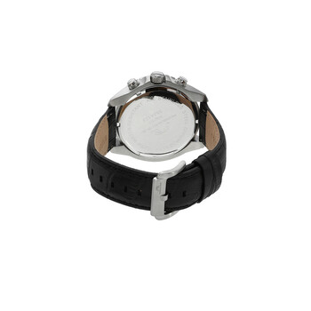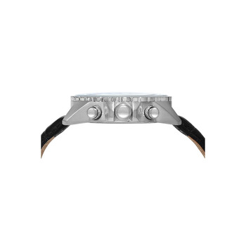 Porsamo Bleu Martin Men's Chronograph Tachymeter Watch with stainless steel case and genuine leather strap, date window between 4 and 5 o'clock; Silver tone & black Silver-tone stainless steel case with a black stainless steel bracelet. Fixed silver-tone stainless steel bezel. White dial with silver-tone hands and index hour markers. Minute markers around the outer rim. Dial Type: Analog. Luminescent hands and markers. Date display between 4 and 5 o'clock position. Chronograph - three sub-dials displaying: 60 second, 60 minute and 24 hour. Miyota Caliber OS20 quartz movement. Scratch resistant mineral crystal. Solid case back. Round case shape, case size: 46 mm. Buckle clasp. Water resistant at 100 meters / 330 feet. Functions: chronograph, date, hour, minute, second. Martin Chronograph Series. Luxury watch style. Watch label: Japan Movt. Porsamo Bleu Martin Chronograph Quartz White Dial Men's Watch 353AMAL.