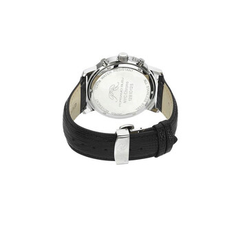 Porsamo Bleu NYC Chrono Men's Chronograph Watch With Mother of Pearl Black Dial; Genuine Leather Strap, Two-tone and Black Silver-tone stainless steel case with a black leather strap. Fixed yellow gold-tone stainless steel bezel. Black dial with silver-tone hands and index hour markers. Minute markers around the outer rim. Dial Type: Analog. Chronograph - three sub-dials displaying: 60 second, 30 minute and 24 hour. Miyota JS 20 Quartz quartz movement. Scratch resistant mineral crystal. Pull / push crown. Solid case back. Round case shape, case size: 47 mm, case thickness: 12 mm. Band width: 26 mm. Deployment with push button release clasp. Water resistant at 100 meters / 330 feet. Functions: chronograph, hour, minute, second. Nyc Chrono Series. Luxury watch style. Watch label: Japan Movt. Porsamo Bleu Nyc Chrono Chronograph Quartz Black Dial Men's Watch 1281DNYL.