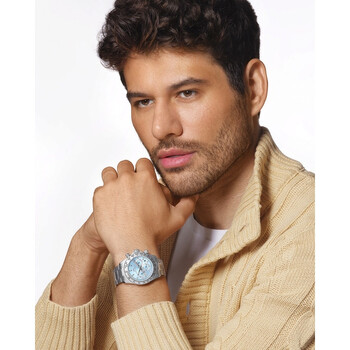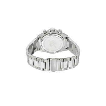 Silver-tone stainless steel case and bracelet. Fixed silver-tone stainless steel bezel. Blue dial with silver-tone hands and index hour markers. Dial Type: Analog. Luminescent hands and markers. Date display between 4 and 5 o'clock position. Quartz movement. Scratch resistant mineral crystal. Pull / push crown. Solid case back. Round case shape, case size: 41 mm, case thickness: 13 mm. Band width: 22 mm. Deployment with push button release clasp. Water resistant at 100 meters / 330 feet. Functions: date, day, hour, minute, second. Preston Series. Luxury watch style. Watch label: Japan Movt. Porsamo Bleu Preston Quartz Blue Dial Men's Watch 1036APRS.