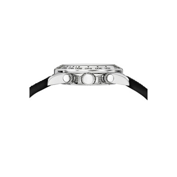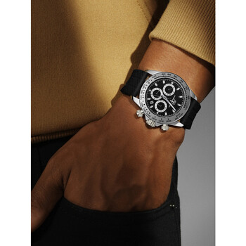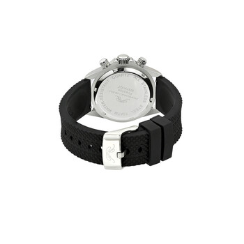 Porsamo Bleu Preston Sport Men's Multifunction Watch With Stainless Steel Case And Black Silicone Strap; Date Window Between 4 And 5 O'Clock; Silver Tone And Black Silver-tone stainless steel case with a black silicone strap. Fixed tachymeter scale silver-tone stainless steel bezel. Black dial with silver-tone hands and index hour markers. Minute markers around the outer rim. Dial Type: Analog. Luminescent hands and markers. Date display between 4 and 5 o'clock position. Quartz movement. Scratch resistant mineral crystal. Pull / push crown. Solid case back. Round case shape, case size: 41 mm, case thickness: 13 mm. Band width: 22 mm. Buckle clasp. Water resistant at 100 meters / 330 feet. Functions: chronograph, date, hour, minute, second. Preston Sport Series. Luxury watch style. Watch label: Japan Movt. Porsamo Bleu Preston Sport Chronograph Quartz Black Dial Men's Watch 1037APRR.