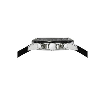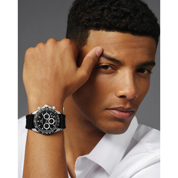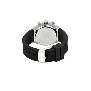 Porsamo Bleu Preston Sport Men's Multifunction Watch With Stainless Steel Case And Black Silicone Strap; Black Dial and Bezel; Date Window Between 4 And 5 O'Clock; Silver Tone And Black Silver-tone stainless steel case with a black silicone strap. Fixed black stainless steel bezel. Black dial with silver-tone hands and index hour markers. Minute markers around the outer rim. Dial Type: Analog. Luminescent hands and markers. Date display between 4 and 5 o'clock position. Quartz movement. Scratch resistant mineral crystal. Pull / push crown. Solid case back. Round case shape, case size: 41 mm, case thickness: 13 mm. Band width: 22 mm. Buckle clasp. Water resistant at 100 meters / 330 feet. Functions: chronograph, day, date, hour, minute, second. Preston Sport Series. Luxury watch style. Watch label: Japan Movt. Porsamo Bleu Preston Sport Black Dial Men's Watch 1037BPRR.