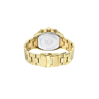 Porsamo Bleu Roman Men's Chronograph Watch With Stainless Steel Case and Bracelet; Gold and Blue Yellow gold-tone stainless steel case and bracelet. Fixed yellow gold-tone stainless steel bezel. Blue dial with yellow gold-tone hands and index hour markers. Minute markers around the outer rim. Dial Type: Analog. Luminescent hands and markers. Chronograph - three sub-dials displaying: 60 second, 30 minute and 24 hour. Miyota JS 20 Quartz quartz movement. Scratch resistant mineral crystal. Pull / push crown. Solid case back. Round case shape, case size: 42 mm, case thickness: 12 mm. Band width: 22 mm. Deployment with push button release clasp. Water resistant at 50 meters / 165 feet. Functions: chronograph, hour, minute, second. Roman Series. Luxury watch style. Watch label: Japan Movt. Porsamo Bleu Roman Chronograph Quartz Blue Dial Men's Watch 1291DROS.