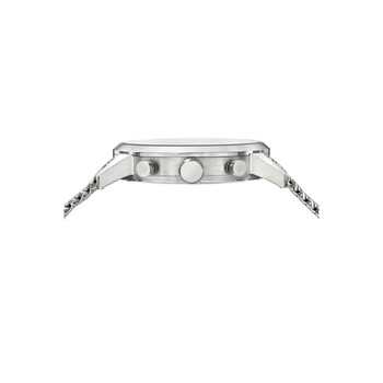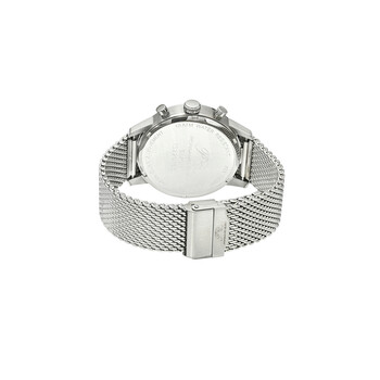 Porsamo Bleu Simon Chronograph Men's Watch; Stainless Steel Mesh Band; Silver, Black and Green Silver-tone stainless steel case and bracelet. Fixed silver-tone stainless steel bezel. Green dial with silver-tone hands and index hour markers. Minute markers around the outer rim. Dial Type: Analog. Luminescent hands and markers. Quartz movement. Scratch resistant mineral crystal. Pull / push crown. Solid case back. Round case shape, case size: 44 mm. Band width: 22 mm. Fold over with double push button release clasp. Water resistant at 100 meters / 330 feet. Functions: chronograph, hour, minute, second. Simon Series. Luxury watch style. Watch label: Japan Movt. Porsamo Bleu Simon Green Dial Men's Watch 1322CSIS.
