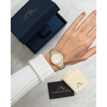Porsamo Bleu Victoria Ladies' Watch With Stainless Steel Case And Bracelet; White Dial; Crystal Hour Markers; Date Window At 3 O'Clock; Two Tone