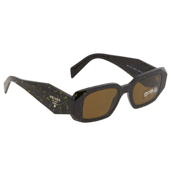Prada Sunglasses. Series number: PR 17WS. Color code: 19D01T. Shape: Rectangular. Lens Width: 49 mm. Lens Bridge: 20 mm. Arm Length: 145 mm. 100% UV protection. Frame Material: Plastic. Frame Color: Black;Yellow Marble. Lenses Type: Dark Brown. Rim Style: Full-Rim. UPC/EAN code: 8056597753616. Prada Dark Brown Rectangular Ladies Sunglasses PR 17WS 19D01T 49.