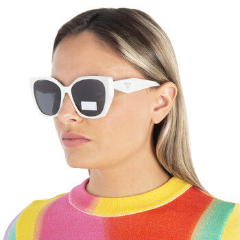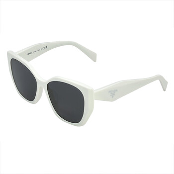 Prada Sunglasses. Series number: PR 19ZSF. Color code: 1425S0. Shape: Cat Eye. Lens Width: 56 mm. Lens Bridge: 16 mm. Arm Length: 145 mm. 100% UV protection. Frame Material: Plastic. Frame Color: White. Lenses Type: Dark Grey. Rim Style: Full-Rim. UPC/EAN code: 8056597750530. Prada Dark Grey Cat Eye Ladies Sunglasses PR 19ZSF 1425S0 56.