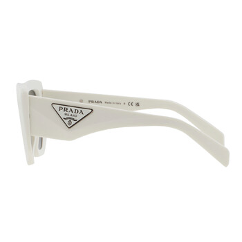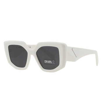 Prada Sunglasses. Series number: PR 14ZS. Color code: 1425S0. Shape: Irregular. Lens Width: 50 mm. Lens Bridge: 18 mm. Arm Length: 140 mm. 100% UV protection. Frame Material: Acetate. Frame Color: White. Lenses Type: Dark Grey. Rim Style: Full-Rim. UPC/EAN code: 8056597900256. Prada Dark Grey Irregular Ladies Sunglasses PR 14ZS 1425S0 50.