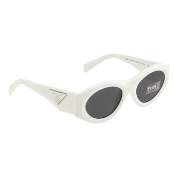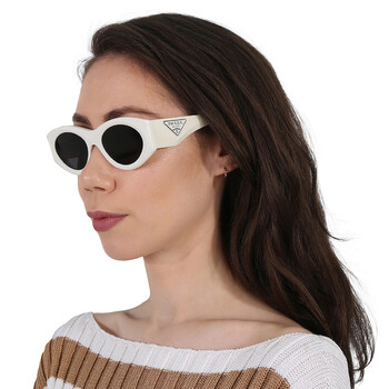 Prada Sunglasses. Series number: PR 20ZS. Color code: 1425S0. Shape: Oval. Lens Width: 53 mm. Lens Bridge: 20 mm. Arm Length: 140 mm. 100% UV protection. Frame Material: Plastic. Frame Color: Talc. Lenses Type: Dark Grey. Rim Style: Full-Rim. UPC/EAN code: 8056597781312. Prada Dark Grey Oval Ladies Sunglasses PR 20ZS 1425S0 53.
