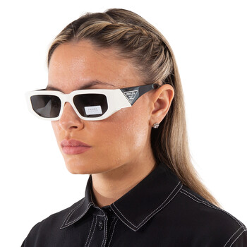 Prada Sunglasses. Series number: PR 09ZS. Color code: 1425S0. Shape: Cat Eye. Lens Width: 54 mm. Lens Bridge: 18 mm. Arm Length: 140 mm. 100% UV protection. Non-Polarized. Frame Material: Acetate. Frame Color: White/Black. Lenses Type: Grey. Rim Style: Full-Rim. UPC/EAN code: 8056597744157. Prada Grey Cat Eye Ladies Sunglasses PR 09ZS 1425S0 54.