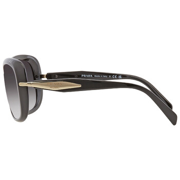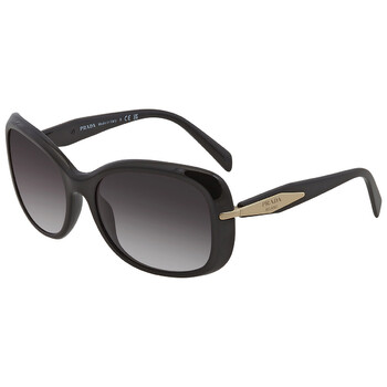 Prada Sunglasses. Series number: PR 04ZS. Color code: 1AB09S. Shape: Butterfly. Lens Width: 57 mm. Lens Bridge: 18 mm. Arm Length: 135 mm. 100% UV protection. Frame Material: Plastic. Frame Color: Black. Lenses Type: Grey Gradient. Rim Style: Full-Rim. UPC/EAN code: 8056597744379. Prada Grey Gradient Butterfly Ladies Sunglasses PR 04ZS 1AB09S 57.