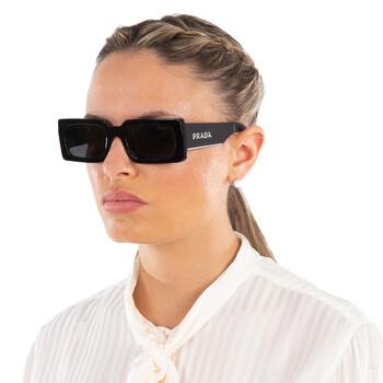 Prada Sunglasses. Series number: PR A07S. Color code: 1AB5S0. Shape: Rectangular. Lens Width: 52 mm. Lens Bridge: 20 mm. Arm Length: 145 mm. 100% UV protection. Non-Polarized. Frame Material: Acetate. Frame Color: Black. Lenses Type: Grey. Rim Style: Full-Rim. UPC/EAN code: 8056597946551. Prada Grey Rectangular Ladies Sunglasses PR A07S 1AB5S0 52.