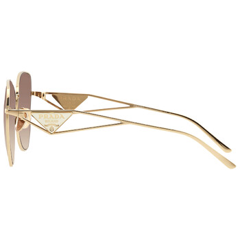 . Prada Sunglasses. Series number: PR 57YS. Color code: ZVN3D0. Shape: Irregular. Lens Width: 57 mm. Lens Bridge: 18 mm. Arm Length: 140 mm. 100% UV protection. Non-Polarized. Frame Material: Metal. Frame Color: Pale Gold. Lenses Type: Light Brown Gradient Light Gray. Rim Style: Full-Rim. UPC/EAN code: 8056597627474. Prada Light Brown Gradient Light Gray Irregular Ladies Sunglasses PR 57YS ZVN3D0 57.