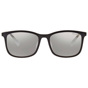 Prada Linea Rossa Sunglasses. Series number: PS 01TSF. Color code: DG02B0. Shape: Rectangular. Lens Width: 57 mm. Lens Bridge: 18 mm. Arm Length: 140 mm. 100% UV protection. Frame Material: Plastic. Frame Color: Black Rubber. Lenses Type: Light Grey Mirror Silver. Rim Style: Full-Rim. UPC/EAN code: 8053672838954. Prada Linea Rossa Light Grey Mirror Silver Rectangular Men's Sunglasses PS 01TSF DG02B0 57.