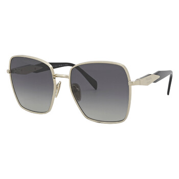 Prada Sunglasses. Series number: PR 64ZS. Color code: ZVN5W1. Shape: Square. Lens Width: 57 mm. Lens Bridge: 18 mm. Arm Length: 140 mm. 100% UV protection. Polarized. Frame Material: Metal;Acetate. Frame Color: Pale Gold/Black. Lenses Type: Polarized Grey Gradient. Rim Style: Full-Rim. UPC/EAN code: 8056597877282. Prada Polarized Grey Gradient Square Ladies Sunglasses PR 64ZS ZVN5W1 57.