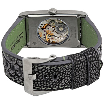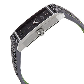 Silver-tone stainless steel case with a black calf leather strap. Fixed silver-tone stainless steel bezel. Black dial with silver-tone leaf-style shape hands and index hour markers. Minute markers around the outer rim. Dial Type: Analog. One - small second subdial. Armand Nicolet Calibre AN0712A hand wind movement with a 34-hour power reserve. Scratch resistant sapphire crystal. Pull / push crown. Transparent case back. Rectangle case shape, case size: 48 x 29 mm, case thickness: 9 mm. Band width: 23 mm. Tang clasp. Water resistant at 30 meters / 100 feet. Functions: hour, minute, second. Luxury watch style. Watch label: Swiss Made. Pre-owned Armand Nicolet L11 Black Dial Men's Hand Wound Leather Watch 9680A-NR-PK4140NR.