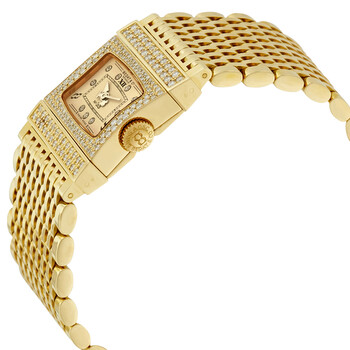 18kt yellow gold diamond-set case with a yellow gold-tone 18kt yellow gold bracelet. Fixed 18kt yellow gold diamond-set bezel. Champagne dial with gold-tone hands and diamond hour markers. Roman numerals mark the 4 and 12 o'clock positions. Minute markers around the inner ring. Dial Type: Analog. Quartz movement. Scratch resistant sapphire crystal. Pull / push crown. Solid case back. Unique case shape, case size: 26 mm x 24 mm. Hidden fold over clasp. Water resistant at 50 meters / 165 feet. Functions: hour, minute. Additional Info: case can be flipped to show the solid caseback. No. 33 Series. Luxury watch style. Watch label: Swiss A.O.S.C. Pre-owned Bedat No. 33 Quartz Diamond Champagne Dial Ladies Watch 338.333.809. Box: No ,Paper: No