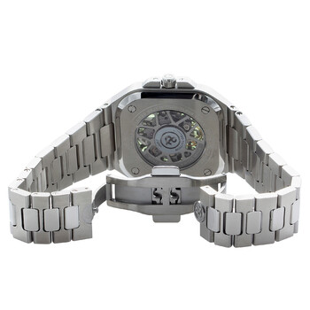 Silver-tone stainless steel case and bracelet. Fixed silver-tone stainless steel bezel. Green dial with silver-tone hands and index hour markers. Dial Type: Analog. Luminescent hands and markers. Bell and Ross Calibre BR-CAL.322 Automatic movement, based upon Sellita SW300-1, containing 25 Jewels, bitting at 28800 vph, and has a power reserve of approximately 38 hours. Scratch resistant sapphire crystal. Screw down crown. Transparent see through case back. Square case shape, case size: 42 mm. Fold over clasp with a safety release. Water resistant at 100 meters / 330 feet. Functions: hour, minute, second. Br 05 Series. Luxury watch style. Watch label: Swiss Made. Pre-owned Bell and Ross Br 05 Green Dial Men's Watch BR05A-GN-SKST/SST.