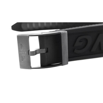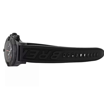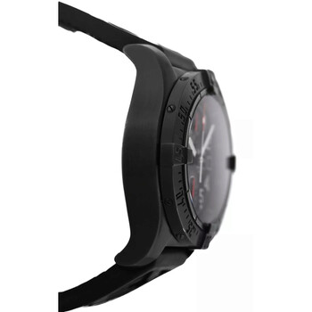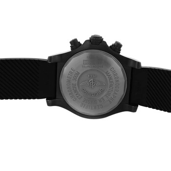 Black stainless steel case with a black rubber strap. Uni-directional rotating black stainless steel bezel. Black dial with silver-tone hands and Arabic numeral hour markers. Minute markers around the outer rim. Dial Type: digital. Luminescent hands and markers. Date display at the 3 o'clock position. Chronograph - three sub-dials displaying: 60 second, 30 minute and 12 hour. Breitling Calibre 13 Automatic movement, based upon ETA Valjoux 7750, containing 25 Jewels, bitting at 28800 vph, and has a power reserve of approximately 42 hours. Scratch resistant sapphire crystal. Screw down crown. Solid case back. Round case shape, case size: 45 mm. Buckle clasp. Water resistant at 300 meters / 1000 feet. Functions: chronograph, date, hour, minute, second, chronometer. Avenger Skyland Series. Dive watch style. Watch label: Swiss Made. Pre-owned Breitling Avenger Skyland Chronograph Automatic Digital Chronometer Black Dial Men's Watch M13380.