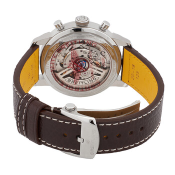 Silver-tone stainless steel case with a brown leather strap. Fixed silver-tone stainless steel bezel. Blue dial with silver-tone hands and index hour markers. Minute markers around the outer rim. Dial Type: Analog. Luminescent hands and markers. Chronograph - three sub-dials displaying: 60 second, 30 minute and 12 hour. Breitling Calibre 01 Automatic movement, containing 47 Jewels, composed of 346 parts, bitting at 28800 vph, and has a power reserve of approximately 70 hours. Scratch resistant sapphire crystal. Pull / push crown. Transparent see through case back. Round case shape, case size: 41 mm. Fold over clasp with a safety release. Water resistant at 100 meters / 330 feet. Functions: chronograph, column wheel, date, hour, minute, second, chronometer. Additional Info: original box, international warranty card, manual (complete accessories). Top Time Shelby Cobra Series. Luxury watch style. Watch label: Swiss Made. Breitling Top Time Shelby Cobra Chronograph Automatic Chronometer