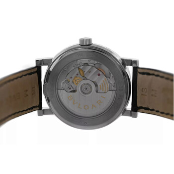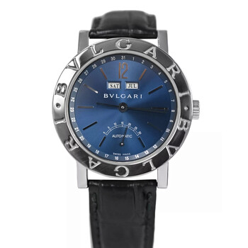 18kt white gold case with a black crocodile leather strap. Fixed 18kt white gold bezel. Blue dial with silver-tone hands and Arabic numeral hour markers. Dial Type: Analog. Automatic movement. Transparent see through case back. Round case shape, case size: 38 mm. Buckle clasp. Functions: month, date, day, hour, minute, second. Bulgari Series. Luxury watch style. Watch label: Swiss Made. Pre-owned Bvlgari Bulgari Automatic Blue Dial Men's Watch BBW38GLAC.