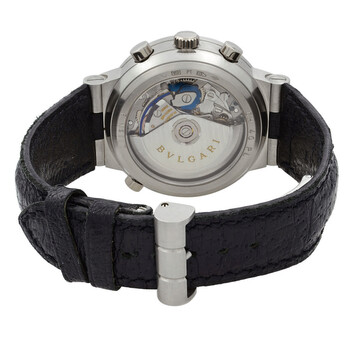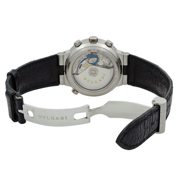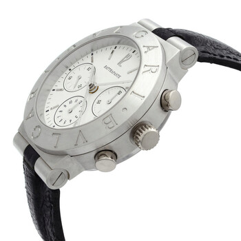 Grey platinum case with a black leather strap. Fixed grey platinum bezel. White dial with silver-tone hands and Arabic & index hour markers. Minute markers around the outer rim. Dial Type: Analog. Chronograph - sub-dials displaying: 12 hour, 30 minute, 60 second. Calibre MVA 900 automatic movement. Scratch resistant sapphire crystal. Pull / push crown. Transparent case back. Round case shape, case size: 40 mm, case thickness: 14.5 mm. Band width: 16 mm, band length: 7.25 inches. Fold over clasp. Water resistant at 100 meters / 330 feet. Functions: chronograph, hour, minute, second. Bvlgari Diagono Series. Luxury watch style. Watch label: Swiss Made. Pre-owned Bvlgari Bvlgari Diagono Chronograph White Dial Men's Watch CH40 PL.