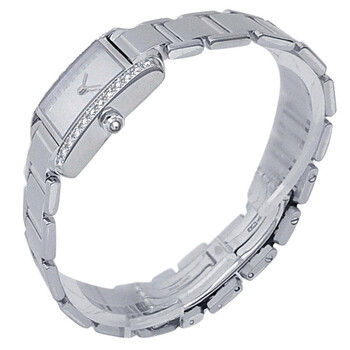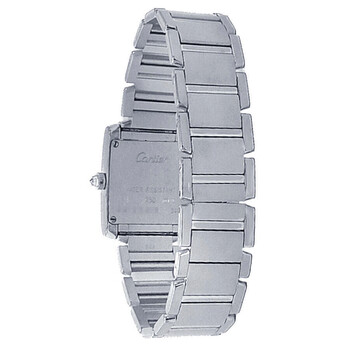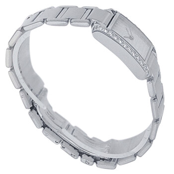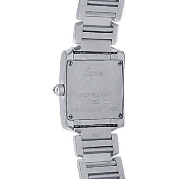 18kt white gold case and bracelet. Fixed bezel with diamond set 18kt white gold. Silver-tone dial. Dial Type: Analog. Quartz movement. Scratch resistant sapphire crystal. Pull / push crown. Solid case back. Rectangle case shape, case size: 20 mm. Fold over clasp with a safety release. Functions: hour, minute. Tank Francaise Series. Dress watch style. Watch label: Swiss Made. Pre-owned Cartier Tank Francaise Quartz Diamond Silver Dial Ladies Watch WE1024S3.