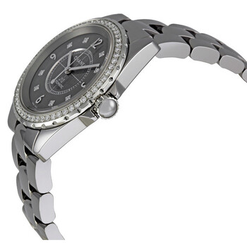 Pre-owned Ceramic case with a ceramic bracelet. Fixed titanium ceramic bezel set with 53 diamonds (0.96 ct). Grey / titanium dial with rhodium-plated mirror-polished hands and diamond hour markers hour markers. Rhodium-plated Arabic numerals mark the 3, 6, 9 and 12 o'clock positions. Self-winding automatic movement with a 42-hour power reserve. Scratch resistant mineral crystal. Screw down crown. Solid case back. Case diameter: 33 mm. Case thickness: 12 mm. Steel trIPle folding clasp. Water resistant at 50 meters (165 feet). Functions: hours, minutes, seconds. Chanel J12 Chromatic Diamond Self-winding Watch H2566.