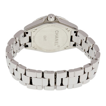 Pre-owned Grey titanium ceramic case with a grey titanium ceramic bracelet. Fixed GMT black ceramic bezel. Charcoal dial with luminous silver-tone hands and Arabic numeral hour markers. 24 hour markers. minute markers around an inner ring. Dial Type: Analog. Luminescent hands and markers. Date display between 4 and 5 o'clock position. Automatic movement with a 42-hour power reserve. Scratch resistant sapphire crystal. Screw down crown. Solid case back. Round case shape, case size: 41 mm. Triple fold over clasp. Water resistant at 100 meters / 330 feet. Functions: date, GMT, second time zone, hour, minute, second. Additional Info: 42 hour power reserve. J12 Chromatic Gmt Series. Luxury watch style. Watch label: Swiss Made. Chanel J12 Chromatic GMT Automatic Charcoal Titanium Ceramic Watch H3099.