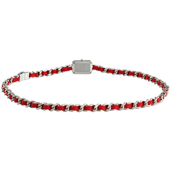 Pre-owned Stainless steel case with a stainless steel bracelet with interwoven red leather insert. Fixed stainless steel bezel. Mother of pearl dial with silver-tone hands. No markers. Dial Type: Analog. Quartz movement. Scratch resistant sapphire crystal. Pull / push crown. Solid case back. Rectangle case shape. Case dimensions: 23.6 mm x 15.8 mm. Case thickness: 6.2 mm. Jewelry clasp. Water resistant at 30 meters / 100 feet. Functions: hour, minute. Additional Info: limited edition of 1000 pieces. Premiere Rock Series. Luxury watch style. Watch label: Swiss Made. Chanel Premiere Rock Mother of Pearl Dial Ladies Watch H5313.