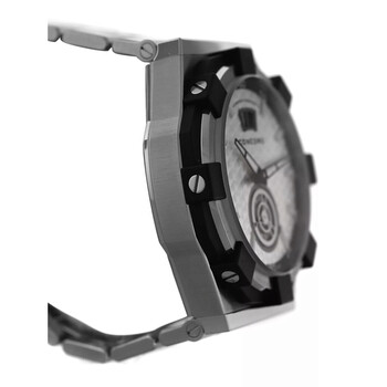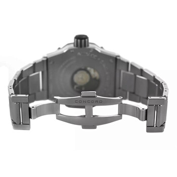 Silver-tone stainless steel case and bracelet. Silver-tone stainless steel bezel. Silver-tone dial with black hands and Arabic numeral & index hour markers. Dial Type: Analog. Luminescent hands and markers. Date display at the 12 o'clock position. Automatic movement. Transparent see through case back. Round case shape, case size: 29 mm. Fold over clasp with a safety release. Functions: date, hour, minute, second. Chronometer Series. Casual watch style. Watch label: Swiss Made. Pre-owned Concord Chronometer Automatic Silver Dial Men's Watch C1 01.5.14.1002.